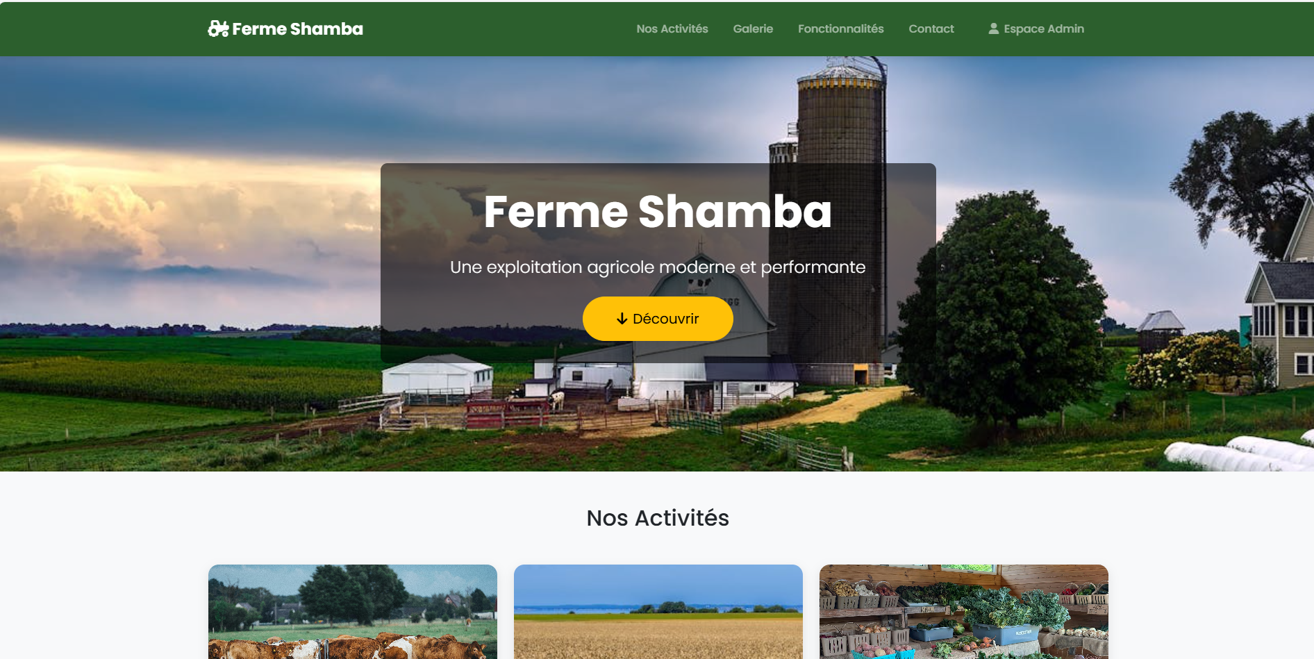 Présentation en détail du projet Ferme Shamba avec les technologies utilisées.